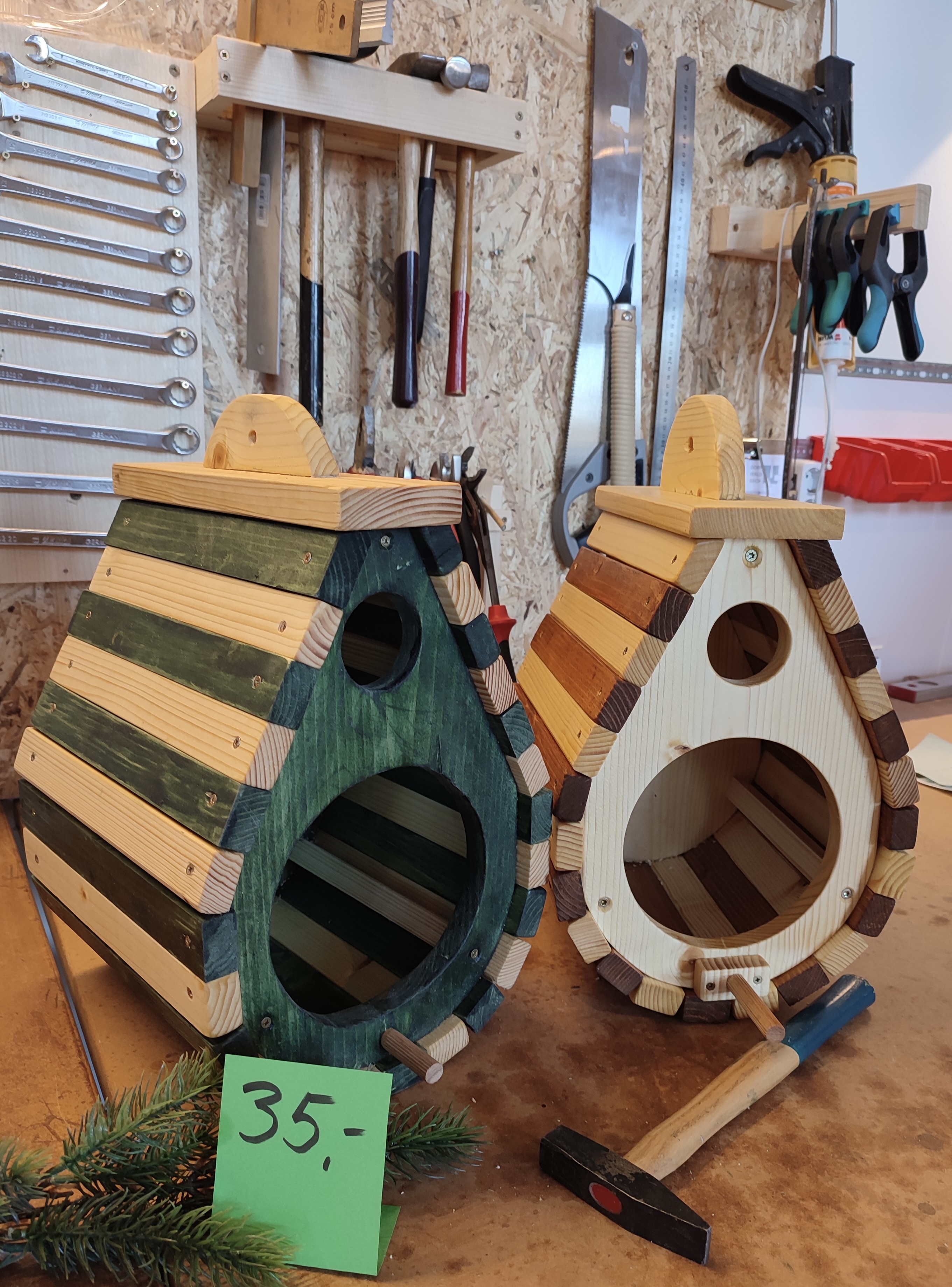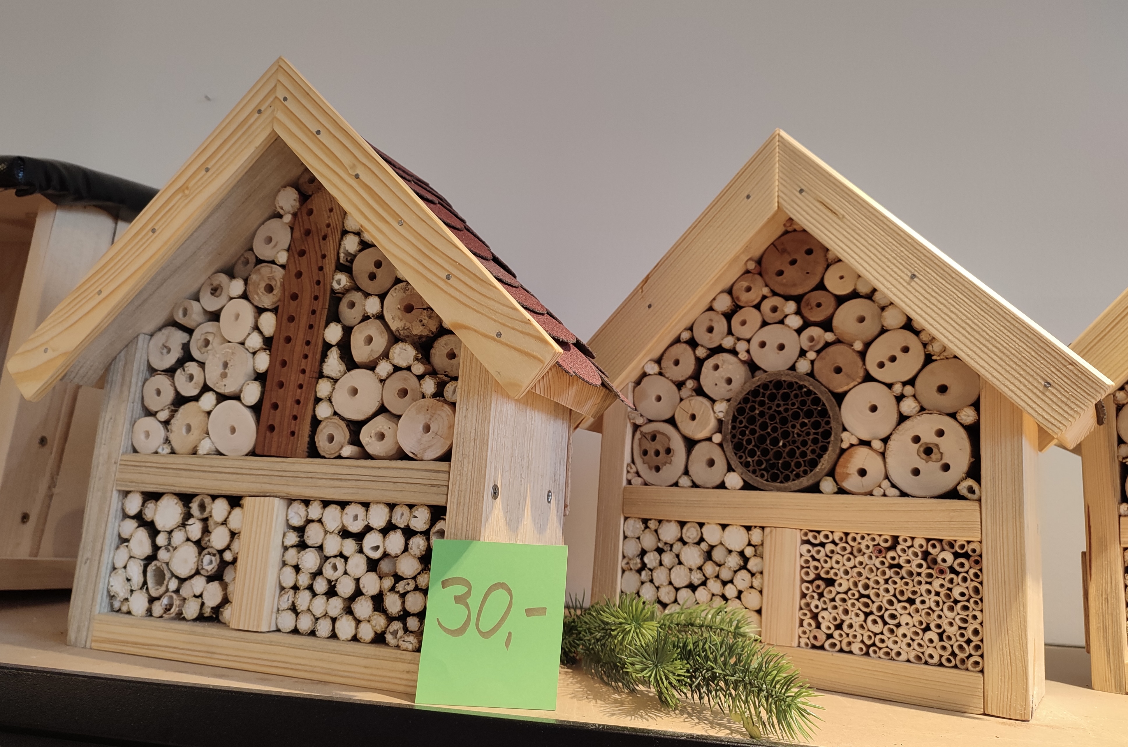 Wir bauen fleißig Unterkünfte für Wild·bienen und Vögel und VERKAUFEN.
